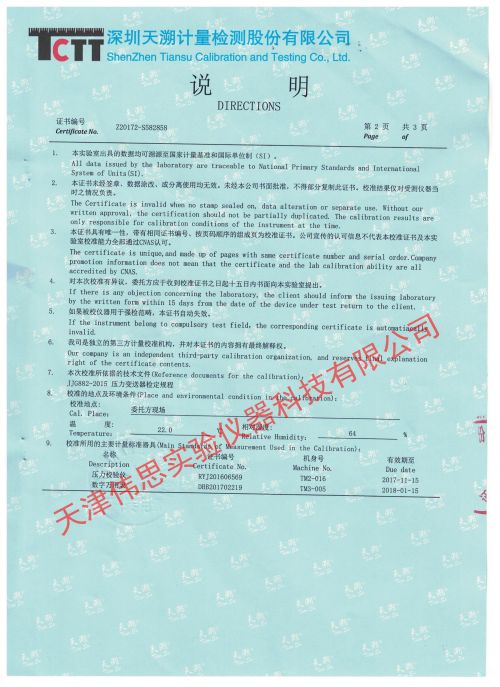 中科院三综合试验机计量报告